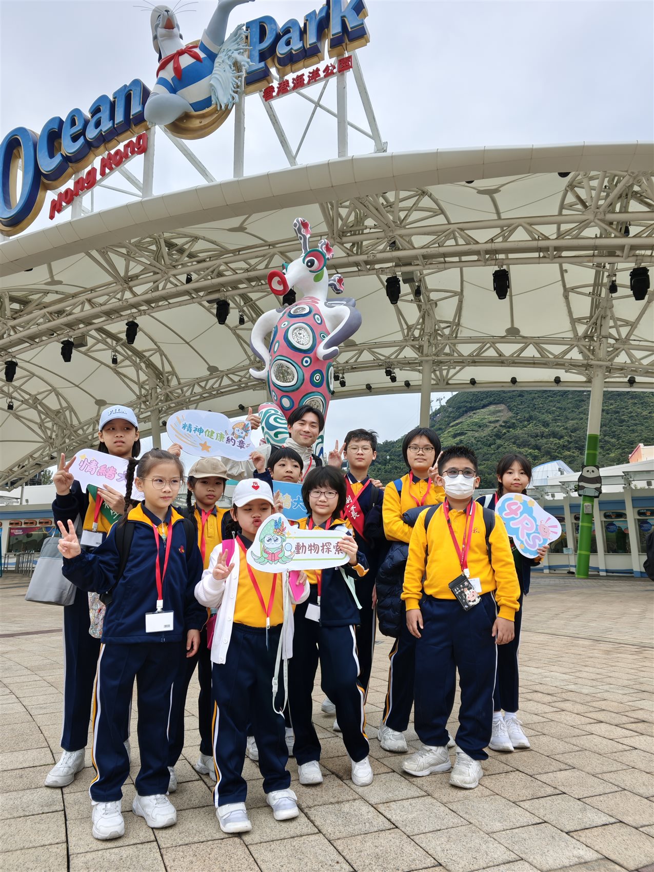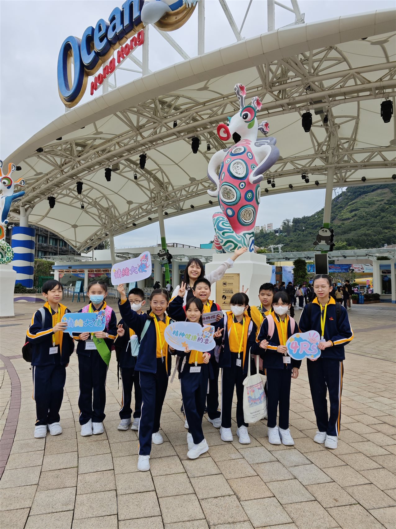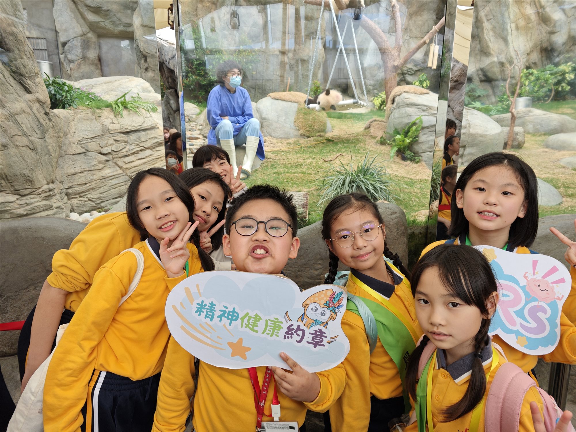 同學們更藉此機會探訪了海洋公園的超級明星 - 大熊貓姊弟。當大家看到這對孖寶安穩地在樹上酣睡時,都不約而同地笑說:「原來大熊貓也在用行動教我們『休息(Rest)』的重要性!」