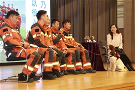 為幫助學生在逆境中鍛煉心志、發掘內在力量,本校特別邀請消防處災難應變救援隊成員,連同他們的忠實夥伴 - 專業搜索犬,親臨校園,與學生進行一場難忘的分享。