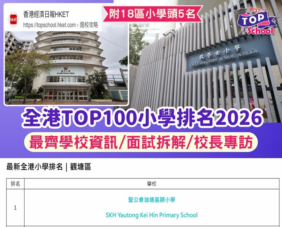 最新全港小學排名2024 |