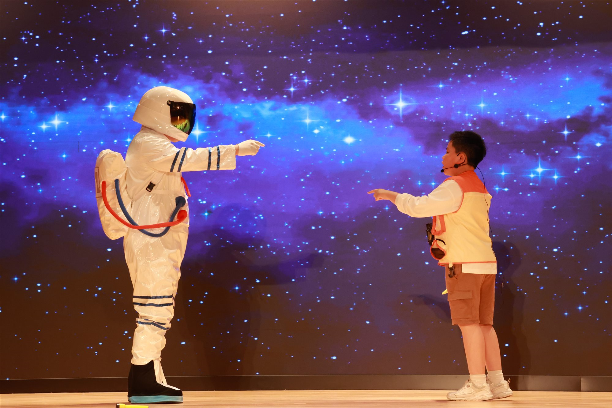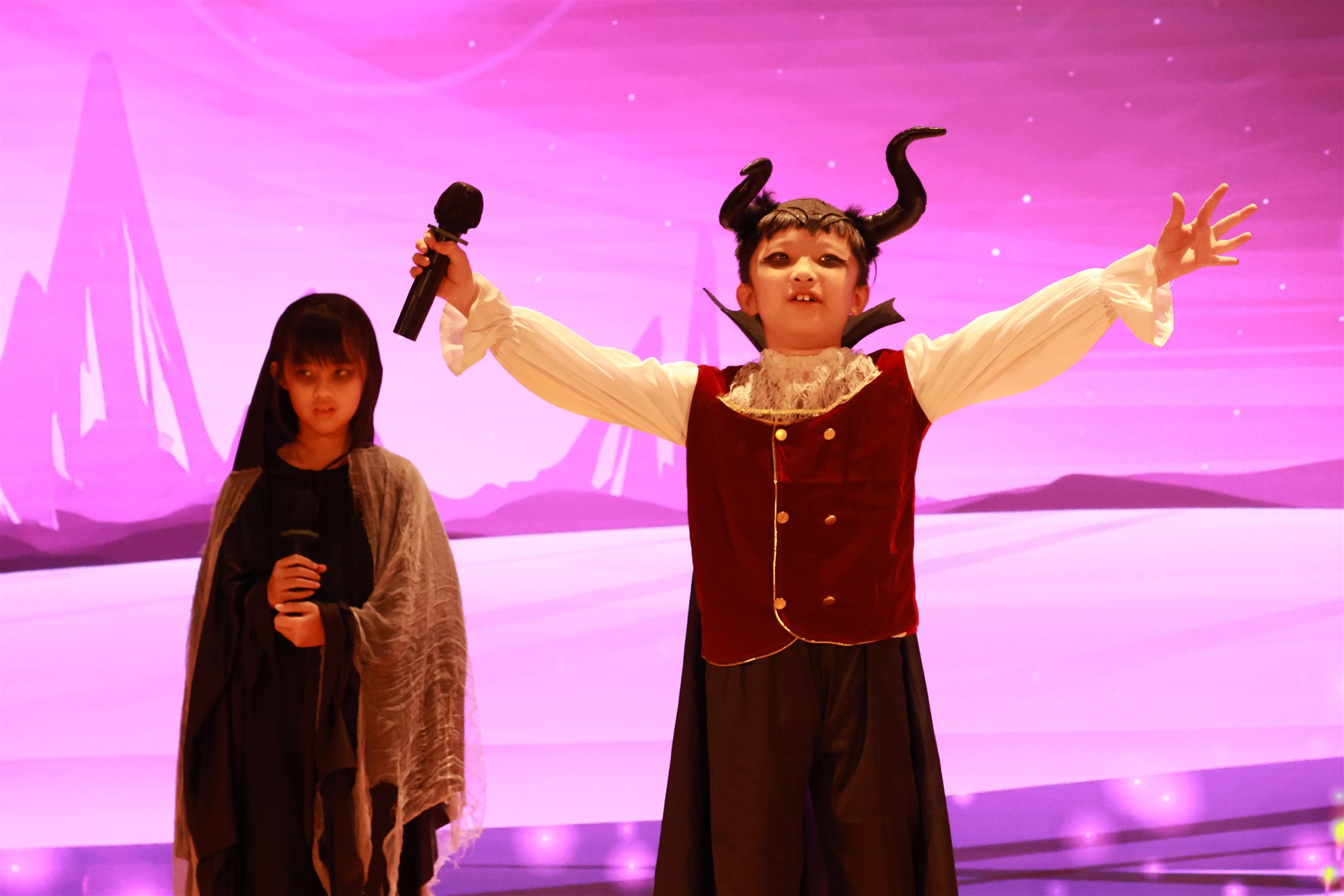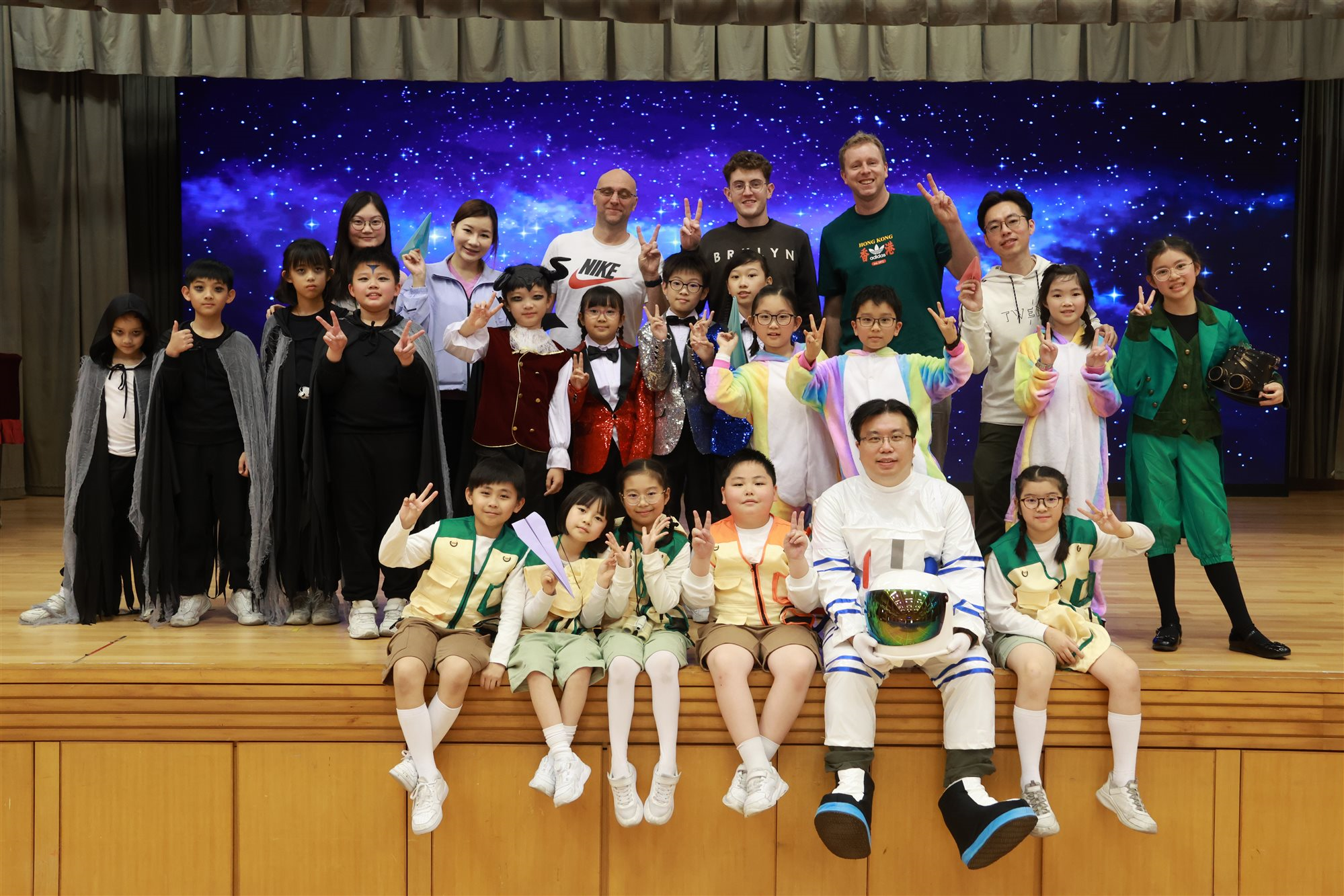 學校英文話劇組於英文日表演了精彩的話劇,學生在整個話劇中運用英語,結合對話、動作與情感表達,讓大家沉浸在故事世界中,有助提升學生的語言能力,透過角色扮演自然練習發音、語調與表達力。你看他們表演得多精彩、多投入!